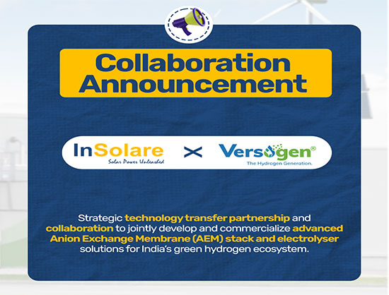 InSolare Energy Join Hands with US-based Versogen to Commercialise AEM Electrolysers in India