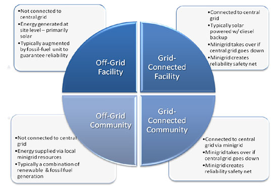 Figure 2: Functions of a Grid-Connected vs. Stand-Alone Minigrid System