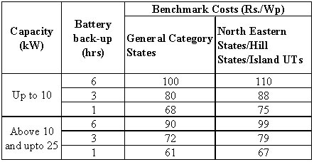 Benchmark costs for off-grid solar PV systems and grid connected rooftop solar power plants for the year 2018-19 has recently been approved. System-wise benchmark costs are as under: