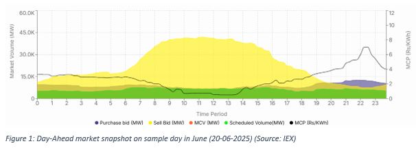 India stands at a critical juncture in its energy transition. With an ambitious goal to integrate 500 GW of non-fossil fuel capacity by 2030, the nation is confronting a monumental challenge to its grid stability. The traditional, predictable model of power generation following a steady consumer demand is being fundamentally disrupted by the intermittent nature of solar and wind energy. Power can be abundant on sunny, windy days, yet scarce on still, cloudy evenings, as evident in Figure 1, e.g., prices fluctuated from as low as INR 0.5/kWh during periods of abundant renewable generation to INR 7/kWh when supply tightened in the Day-Ahead market. Simply building more power plants is not a sustainable solution to this volatility.