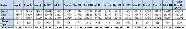 Sector wise monthly distribution of Energy Generation Programme for the year 2018-19