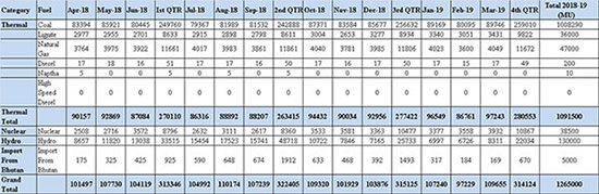 Note: 1. The above Generation Programme is prepared by CEA, based on the actual generation by the Stations during previous years, maintenance schedules furnished by the Stations for the year 2018-19 and anticipated new capacity additions during the year. However, there could be substantial variations in generation from individual Stations due to change in actual maintenance schedules of Stations (vis-à-vis proposed schedules), & sudden outages of units, actual commissioning of new capacities and change in overall generation mix due to constraints in availability of specific sources like hydro or gas etc.