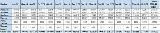 Region wise Monthly distribution of Energy Generation Programme for the year 2018-19