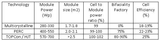 - Module sizes are becoming larger to promote high-power modules, with larger format wafers being deployed.