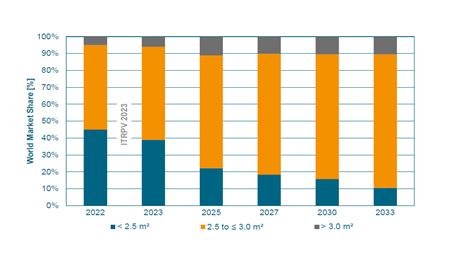 Figure. 1, predicts that 2.5-3.0m2 module sizes will reach upto 80 percent market share in the next 10 years compared to 60 percent market share as of today.
