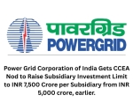 The Cabinet Committee on Economic Affairs has approved enhanced investment delegation for Power Grid Corporation of India, increasing the subsidiary equity investment limit from INR 5,000 crore to INR 7,500 crore, to support renewable evacuation and transmission expansion.