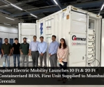 Jupiter Electric Mobility (JEM) unveiled its 10 ft and 20 ft containerised BESS, designed for DG replacement and solar storage, with the first 10 ft unit supplied to Mumbai-based Greenlit.