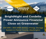 BrightNight and Cordelio Power have closed financing on the 200 MW/800 MWh Greenwater battery energy storage project in Pierce County, Washington.