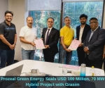 Prozeal Green Energy signed a USD 100 Million deal with Grasim Industries to develop a 70 MW wind-solar hybrid project.