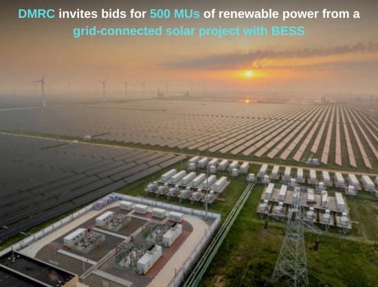 The Delhi Metro Rail Corporation has invited bids to develop a grid-connected captive solar power plant with battery storage to supply 500 MUs of renewable energy annually, aiming to raise its clean energy share above 60 percent.