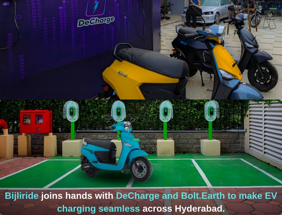 Bijliride Partners with DeCharge and Bolt. Earth to Simplify EV Charging Experience in Hyderabad