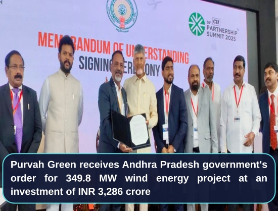 Purvah Green, a CESC subsidiary under the RP Sanjiv Goenka Group, has secured a Government Order from Andhra Pradesh to develop a 349.8 MW wind project with an investment of about INR 3,286 crore.