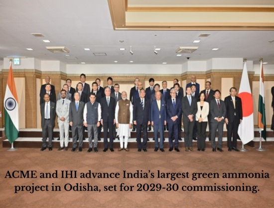The ACME Group and IHI Corporation joint venture has strategic significance for India and Japan as well as to the State of Odisha. It supports the National Green Hydrogen Mission’s target to make India a major producer and exporter of green hydrogen and derivatives, while strengthening Japan’s sourcing strategy for clean fuels to decarbonise its power generation and industrial sectors. The project brings large-scale industrial investment in Odisha, boosts local employment, skill development and positions the state as a leading green energy hub.
