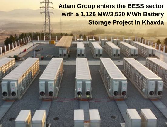 Adani Group has announced its foray into the Battery Energy Storage Systems (BESS) sector with a 1,126 MW/3,530 MWh project at Khavda, Gujarat.