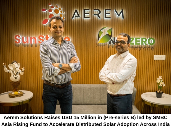 Aerem Solutions has secured INR 136 crore (USD 15 million) in a Pre-Series B round led by SMBC Asia Rising Fund to scale its technology-led platform and accelerate pan-India adoption of distributed solar across MSMEs and households.