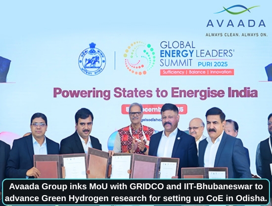 Avaada Group has signed a Memorandum of Understanding (MoU) with GRIDCO and IIT-Bhubaneswar to establish a state-of-the-art Centre of Excellence (CoE) in Odisha dedicated to integrated research, innovation and technology development in the Green Hydrogen sector.