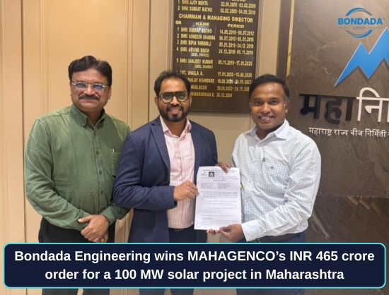 Bondada Engineering has received Letter of Award worth INR 465 crore from Maharashtra State Power Generation Company (MAHAGENCO) to set up a 100 MW solar power project in Maharashtra.
