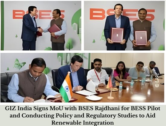 BSES Rajdhani Power Ltd. (BRPL) has signed an MoU with GIZ India to implement pilot projects on battery storage, advanced inverter technologies, and conduct policy and regulatory studies to support renewable energy integration.