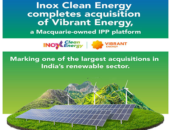 Inox Clean Energy has completed the acquisition of Vibrant Energy’s 1,337 MW renewable portfolio from Macquarie Corporate Holdings and other shareholders...