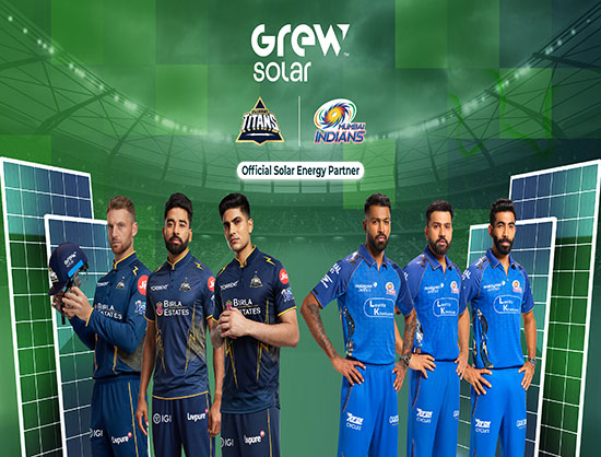 GREW Solar has partnered with Mumbai Indians and Gujarat Titans as the Official Solar Energy Partner for the upcoming Men's T20 cricket season.