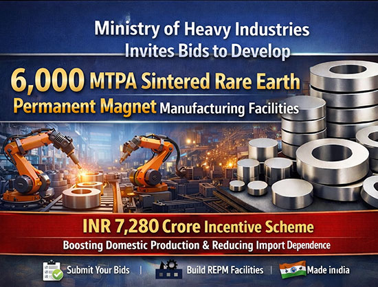 The Ministry of Heavy Industries has issued a Request for Proposal (RFP) to set up 6,000 MTPA integrated rare earth permanent magnet manufacturing capacity...