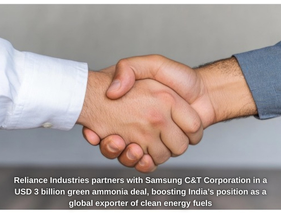 Reliance Industries Signs USD 3 Billion Green Ammonia Supply Deal with Samsung C&T Corporation