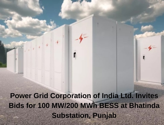 Power Grid Corporation of India Ltd. (POWERGRID) invites bids for 100 MW/200 MWh battery storage project at Bhatinda substation in Punjab.
