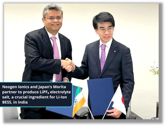 Neogen Ionics Forms JV with Japan's Morita Investment to Produce Electrolyte Salt for BESS in India