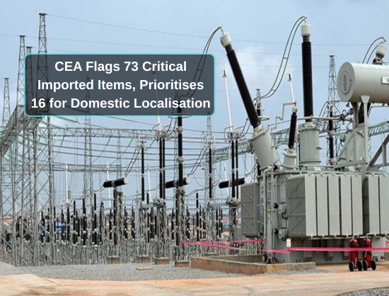 The CEA has identified 73 critical imported power-sector items, prioritising 16 for immediate localisation, urging stakeholders to provide data to boost domestic manufacturing, reduce imports, and strengthen India’s energy security.