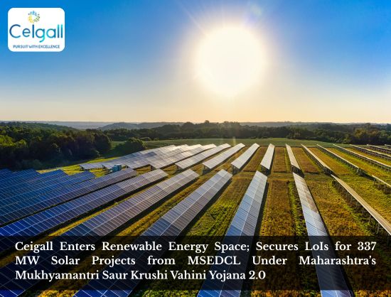 Ceigall India has entered the renewable energy sector with two LOIs from Maharashtra State Electricity Distribution Company (MSEDCL) to develop 337 MW of solar power projects under Maharashtra’s Mukhyamantri Saur Krushi Vahini Yojana 2.0.