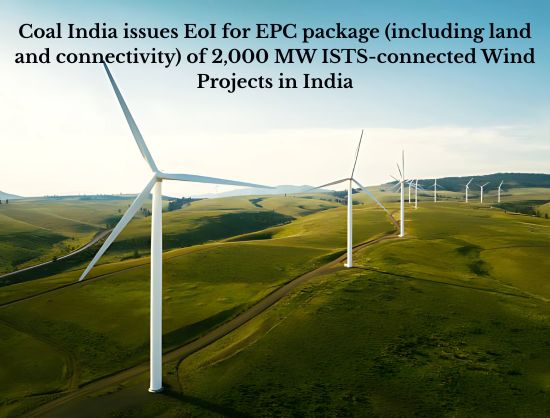 Coal India (CIL) has invited expressions of interest from EPC players for developing 2,000 MW of ISTS-connected wind energy projects across high-potential states in India. Bid submission ends on September 16, 2025.