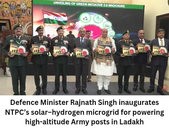 Defence Minister Rajnath Singh has inaugurated NTPC’s solar–hydrogen microgrid at Chushul, a first-of-its-kind system designed to deliver round-the-clock clean power to high-altitude defence posts.