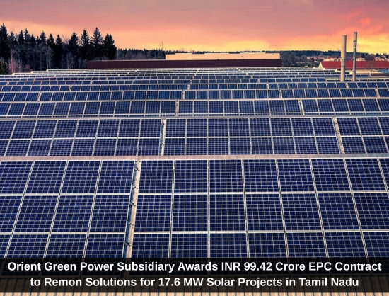 Orient Green Power’s subsidiary Delta Renewable Energy has awarded an INR 99.42 crore EPC contract to Remon Solutions for developing 17.60 MW AC (24.64 MW DC) solar power projects in Tamil Nadu.
