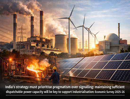India’s strategy must prioritise pragmatism over signalling: maintaining sufficient dispatchable power capacity to support industrialisation and social development even as renewables scale; strengthening transmission and distribution; investing in storage and grid-management technologies; and restoring emphasis on hydro and nuclear as long-horizon anchors for low-carbon development, asserted the Survey.