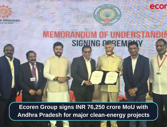 Ecoren Group has signed an MoU with the Andhra Pradesh government to invest INR 76,250 crore in developing 8 GW of renewable energy projects and 1.25 MTPA of green molecules.