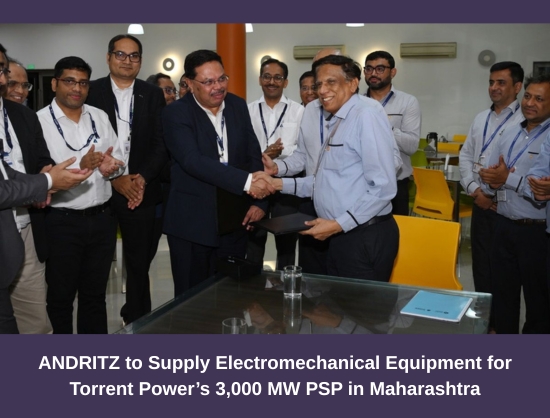 ANDRITZ has secured an order from Torrent Power to supply electromechanical equipment for a 3,000 MW pumped storage project in Maharashtra.
