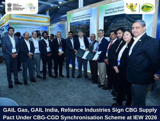GAIL Gas Ltd., GAIL (India) Ltd., and Reliance Industries Ltd. have signed a Tripartite Agreement under the CBG-CGD Synchronisation Scheme on the sidelines of India Energy Week 2026, in Goa.