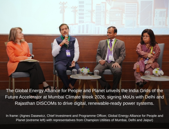 The Global Energy Alliance for People and Planet At Mumbai Climate Week 2026 launched the India Grids of the Future Accelerator, a platform through which the Alliance will deploy up to USD 25 million to modernise power distribution, integrate renewable energy and storage and prepare India’s grids for rapid demand growth. The Alliance signed Memoranda of Understanding with distribution companies (DISCOMs) in Delhi and Rajasthan, designating them as the first cohort of ‘Champion Utilities’ under the Grids of the Future initiative and with All India DISCOM Association (AIDA).