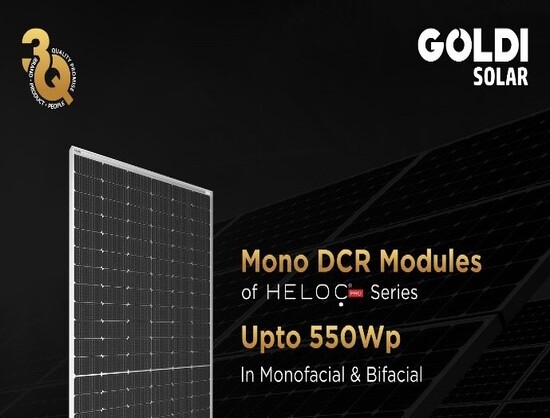 In order to meet growing demand of solar modules in Southern India, Goldi Solar will showcase its HELOC® Pro Mono DCR module at the upcoming RenewX renewable energy trade expo Hyderabad.