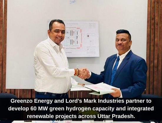 Greenzo Energy India and Lord’s Mark Industries have signed a Memorandum of Understanding (MoU) to jointly develop green hydrogen and renewable energy projects across Uttar Pradesh.