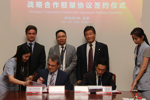 The strategiccooperationframeworkagreementwas signed by Mr. Wang Xin, General Manager of Donghan New Energy Automotive Technology Co., Ltd., and Mr. Herve Champion, Vice President of Strategic Cooperation and Purchasing of Bollore Group. The signing ceremony was witnessed by Zhang Bin, executive director and senior vice president of Hanergy Thin Film Power Group, Ding Jian, senior vice president of Hanergy Thin Film Power Group and CEO of Alta Devices.