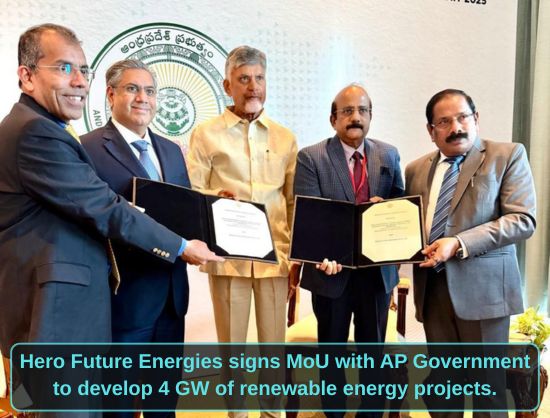 Hero Future Energies (HFE) has signed a Memorandum of Understanding (MoU) with the Andhra Pradesh (AP) Government to invest INR 30,000 crore in developing large-scale renewable energy projects, with plans to deploy its technical and execution expertise to deliver these installations within a defined timeline.