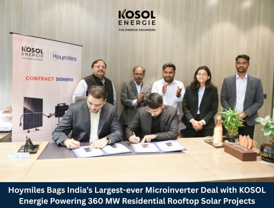 Hoymiles Power Electronics and KOSOL Energie have announced the signing of India’s largest-ever microinverter supply agreement, powering 360 MW of residential rooftop solar projects. The agreement was formalised on January 26, 2026, in Ahmedabad, Gujarat, in the presence of senior leadership teams from both organisations.