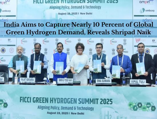 The Minister of State for Power and New and Renewable Energy, Shripad Naik, revealed that India aims to capture nearly 10 percent of the global green hydrogen demand, which is expected to exceed 100 million metric tonnes by 2030.