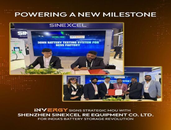 Invergy India, a wholly owned subsidiary of GP Eco Solutions India Ltd., has signed an MoU and Supply Contract with Shenzhen Sinexcel RE Equipment Co., Ltd. for advanced Battery Testing Equipment to support its upcoming 3 GWh BESS factory in Uttar Pradesh.