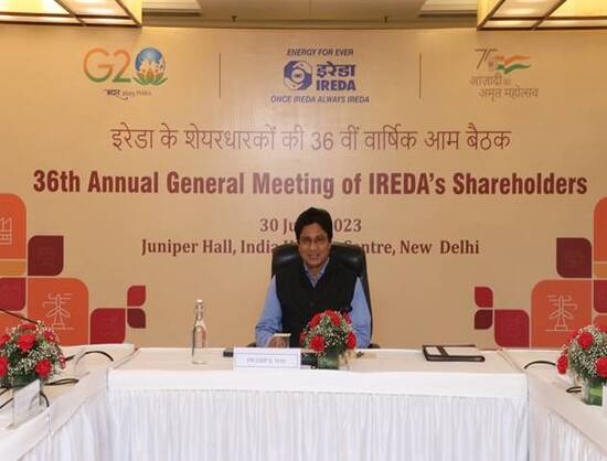 Indian Renewable Energy Development Agency Ltd. (IREDA) recently held its 36th Annual General Meeting (AGM) at India Habitat Centre in New Delhi. The annual accounts for the financial year 2022-23 were adopted at the AGM, showcasing remarkable achievements.