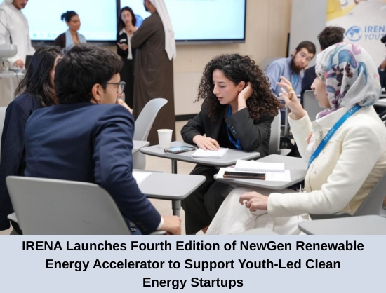 The International Renewable Energy Agency (IRENA) has launched the fourth edition of the IRENA NewGen Renewable Energy Accelerator (NewGen), aimed at supporting young entrepreneurs and innovators in driving the renewable energy transition.