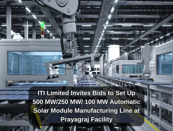 ITI Ltd. invites bids to establish 500 MW/200 MW/100 MW automatic solar module manufacturing line at Prayagraj facility with buy-back clause.