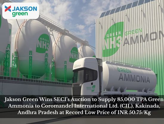 Jakson Green Wins SECI’s Auction to Supply 85,000 TPA Green Ammonia at INR 50.75/Kg