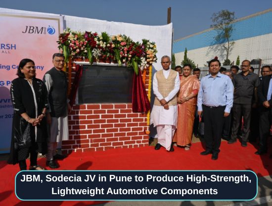 JBM Group has partnered with Portugal-based Sodecia Automotive International SA to set up a hot stamping automotive systems facility in Pune. The foundation stone was laid at JBM’s Neel Metal Products plant in Chakan by Acharya Devvrat, Governor of Maharashtra and Gujarat, alongside senior leadership from both companies.